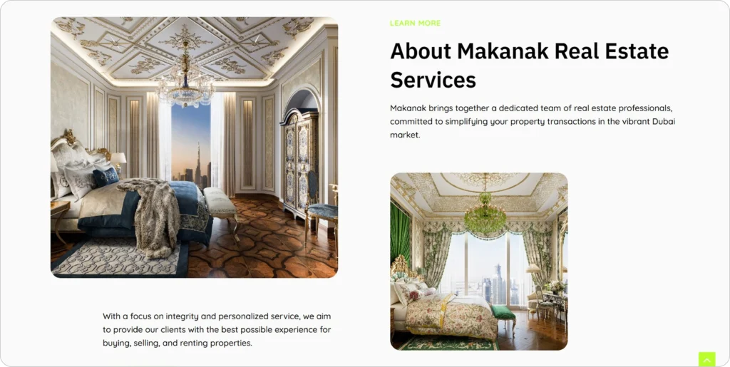The Makanak website offers a refined digital gateway to professional real estate services in Dubai. It provides tailored solutions for property buying, selling, renting, and market consultation, guided by experienced agents who deliver personalized, seamless service throughout every step of the real estate journey.