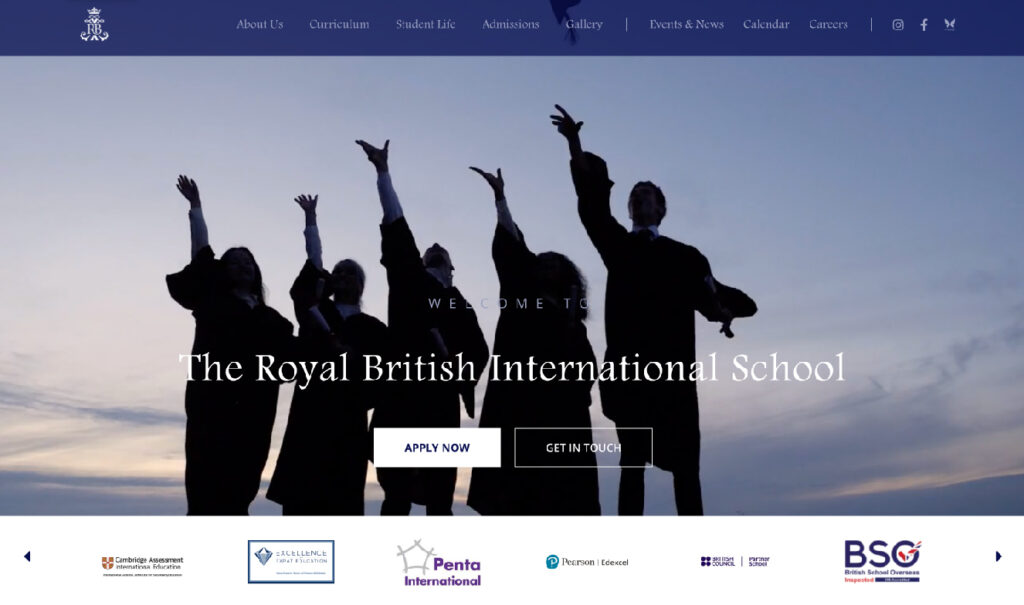 It is the official site for Royal British International School in Egypt offering a British-style education. The website shows all the school information from Programs, Admission Information and Application, Student Life, Faculty and Staff, and Yearly Calendar needed for any parent looking for a school for their child.